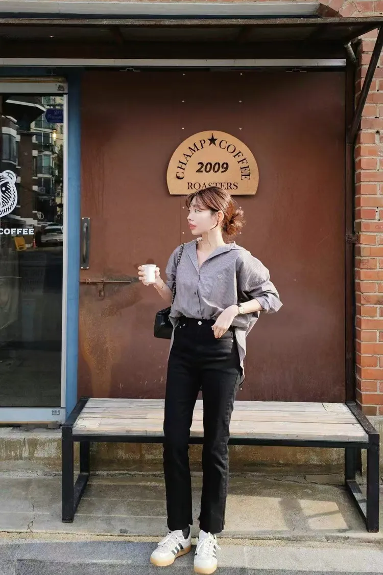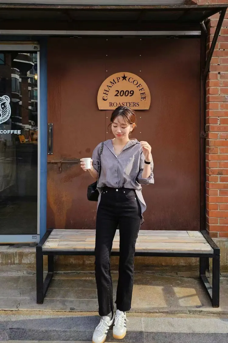 瘦成一道閃電⚡️⚡️ 中腰版型合身小直筒剪裁,顯瘦長腿萬能百搭經典款🫶🫶 褲腳非常微微靴型,褲口不修邊設計🖤🖤🖤