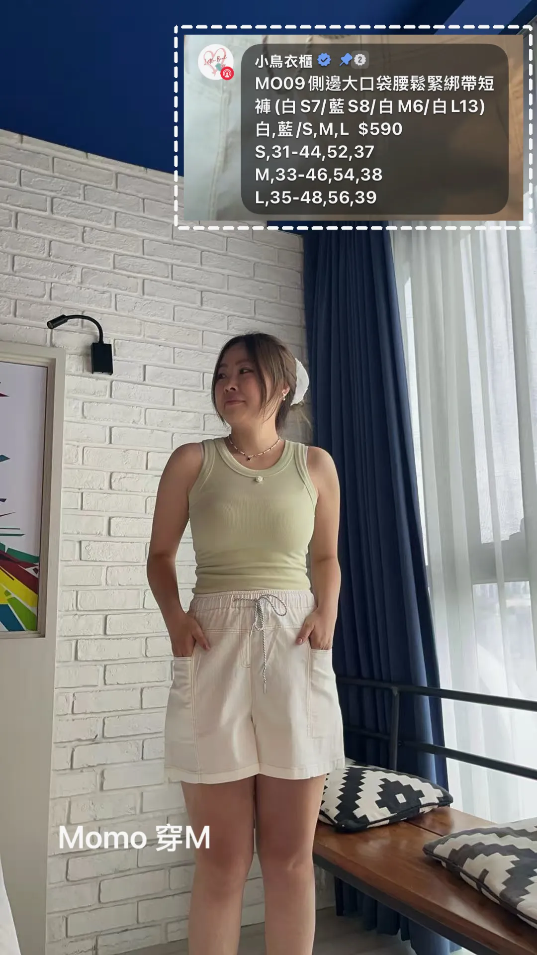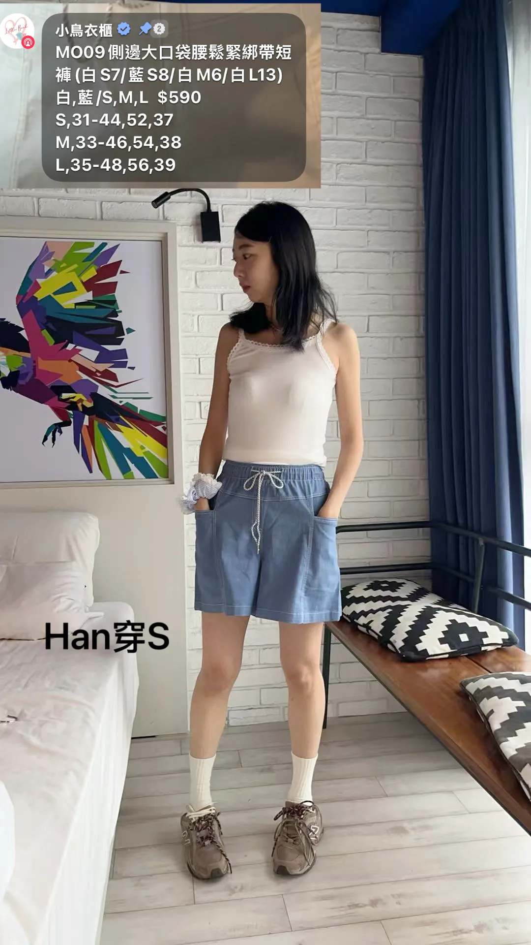 MO09側邊大口袋腰鬆緊綁帶短褲