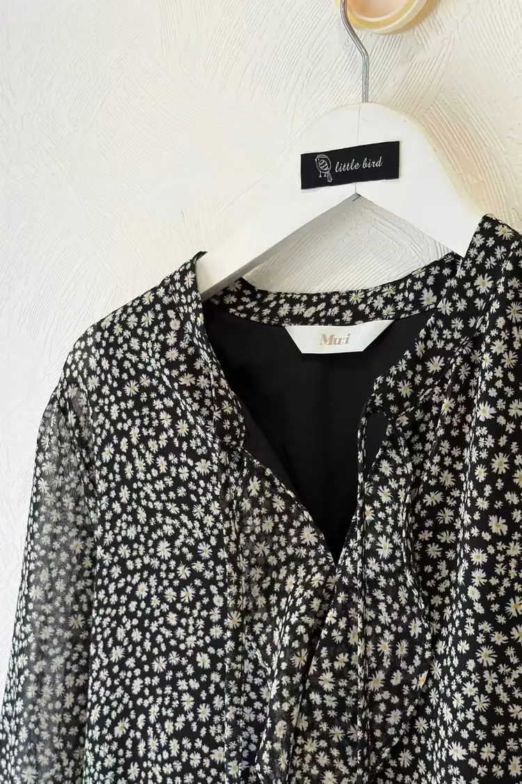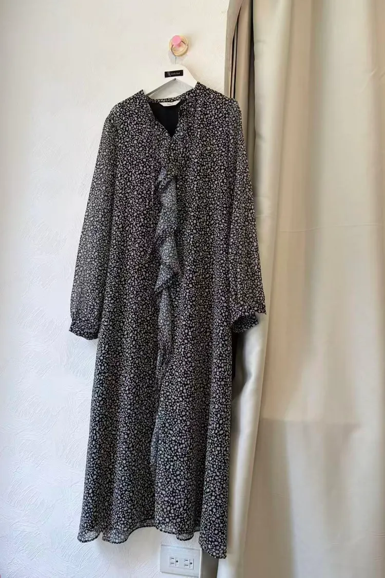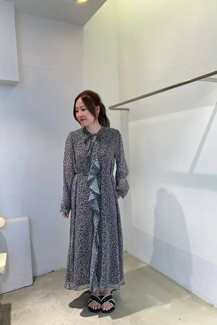 (MUI特價品)MUS53碎點荷葉長洋裝(黑)