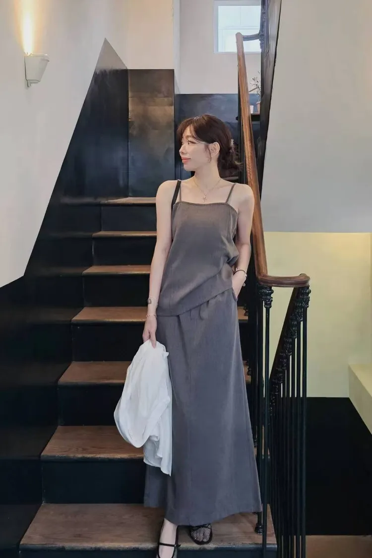 商品一經駐韓採購員下單後,不接受「色差、尺寸不合、與想像中不一樣…等個人觀感理由」退貨。謝謝理解。 *本賣場由李科蓁律師擔任法律顧問 其他運費與付款規格請詳讀: https://www.littlebird-korea.com/menu_footer.php?id=2 *商品除非「現貨」,其他都由韓國追加,需待7-10天。(有可能因布料短缺或天災等不可抗力因素延長,實際出貨日以工廠實際到貨日為主。) *本商品屬「代購服務性質」除瑕疵品,無法退換貨。如需試穿者,歡迎至楊梅工作室試穿再進行選購。 *小鳥衣櫃全館滿$3000免運,其餘一律運費「$70」 時髦的高質感套裝,可以單穿或是在裡面搭配打底T,外罩西裝或是風衣外套直接時髦!!西裝長裙是本季必備的時髦單品,另外搭配毛衣罩衫等等也都很好看😎 西裝材質面料厚度中等,柔軟有挺度,兩色都帶有灰色調,非常高級的色系🖤 細肩帶上衣有內裡,後鬆緊帶,肩帶可調整;長裙有內裡,兩側口袋,後鬆緊帶。建議XS~大M小L穿著 72%聚酯+24%嫘瑩(人造絲)+4%彈力