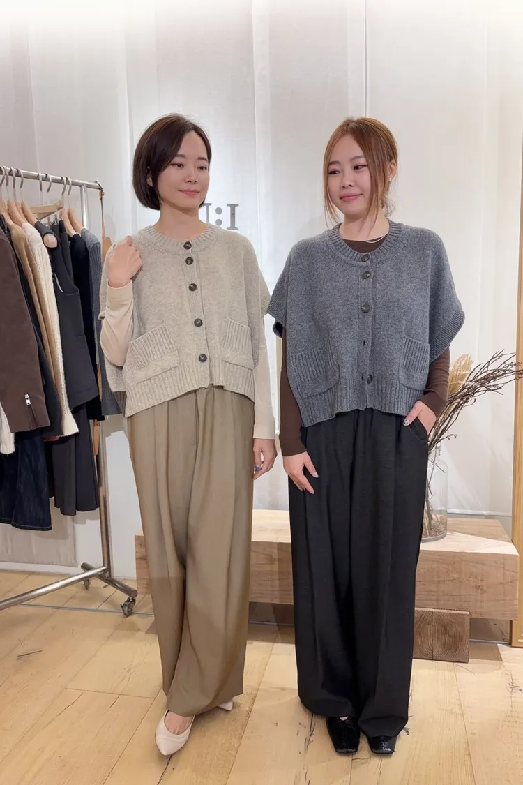 MU01背心坑條方口袋後綁帶圓領釦衫
