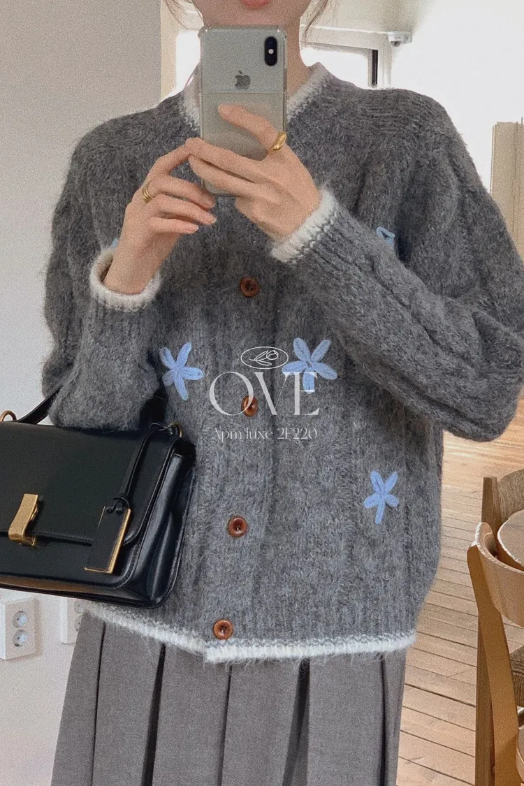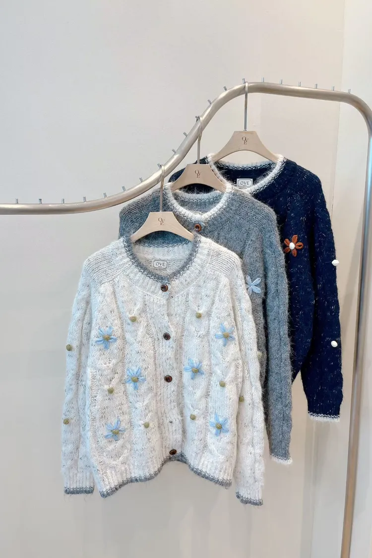 OV04手工針織大花毛衣釦衫(羊毛5%,建議搭打底)