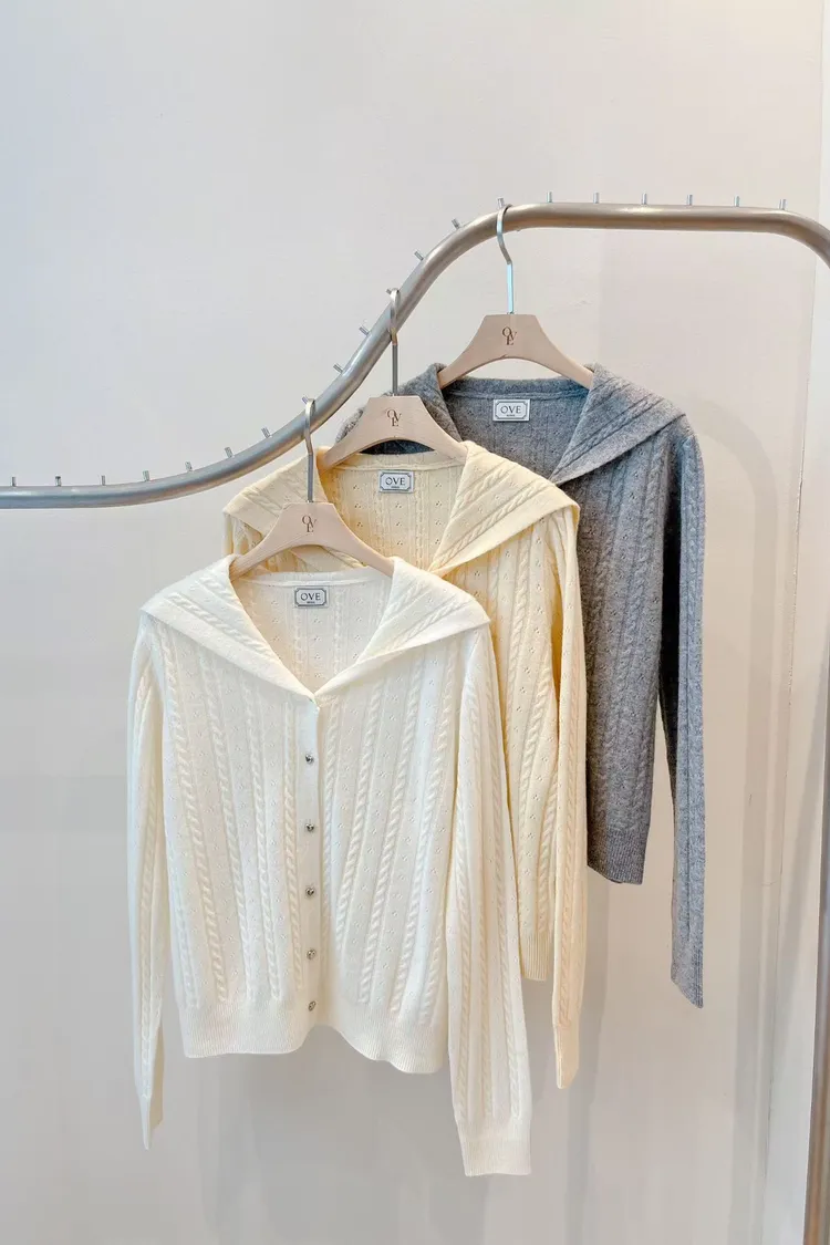 OV12水手領直紋編織愛心釦衫(100%羊毛,親膚柔軟不刺)