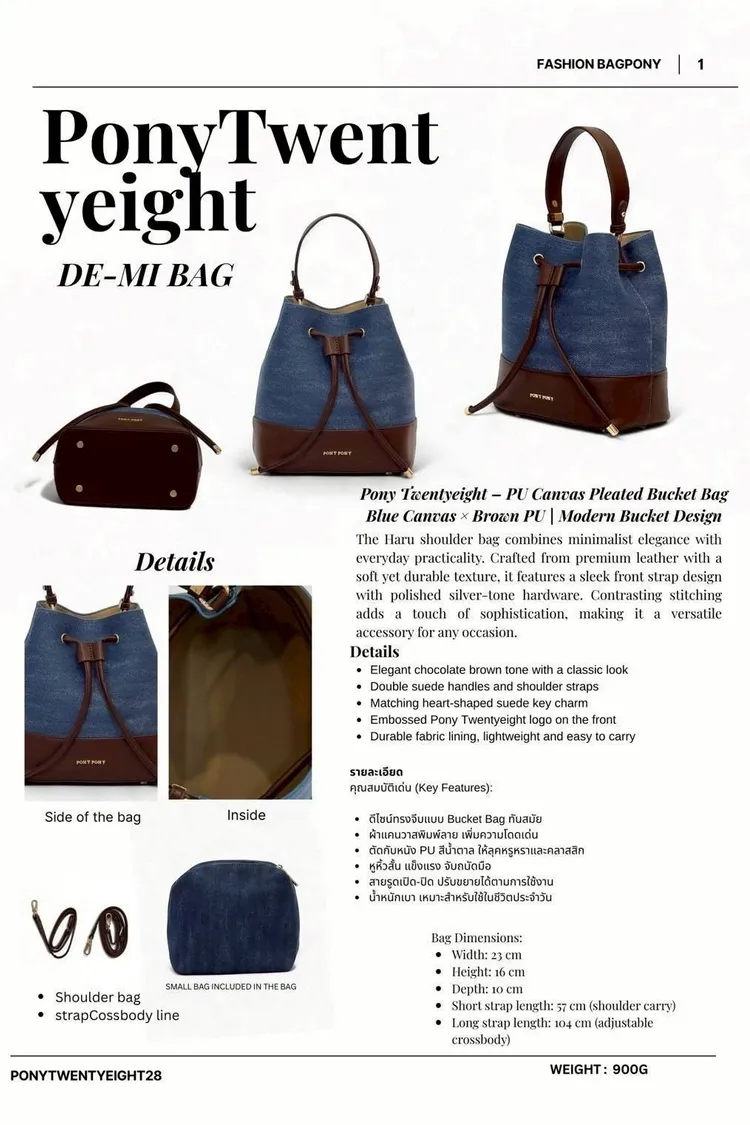 採用質地柔軟耐用的優質皮革精製而成 搭配時尚的前肩帶和拋光銀色金屬配件 撞色縫線更添精緻格調 🌹優雅的巧克力棕色調 🌹雙絨面革手柄和肩帶 🌹正面飾有 Pony Twentyeight 壓花標誌 🌹耐用的織物襯裡袋