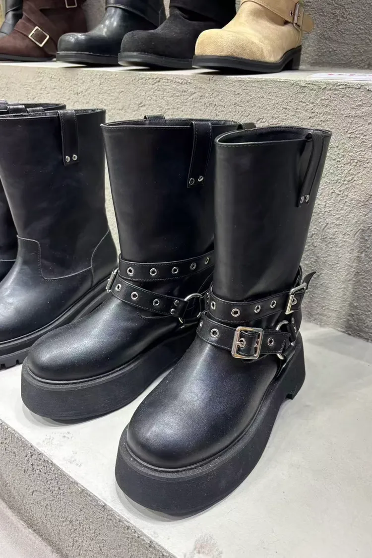 SH04-龐克厚底鉚釘孔環釦帶靴