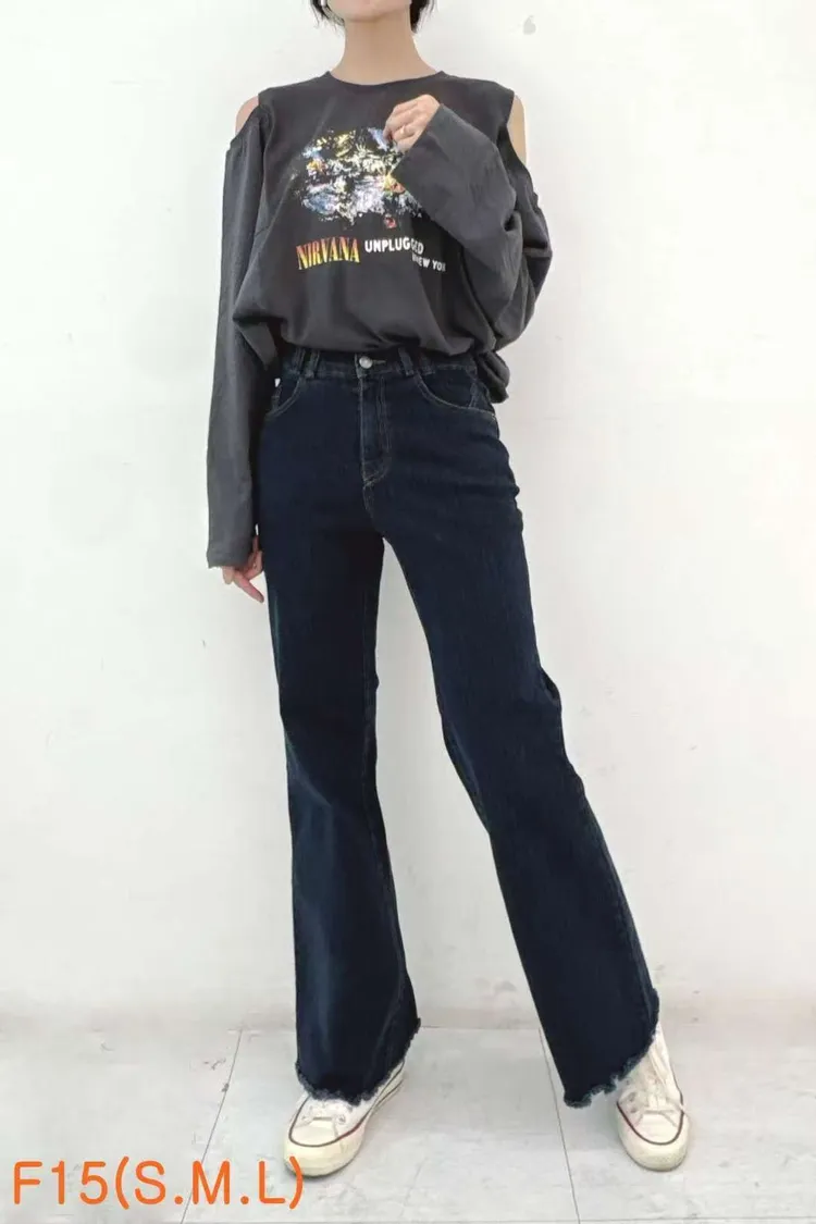 SO01新色-顯瘦不收邊喇叭牛仔褲(F15)