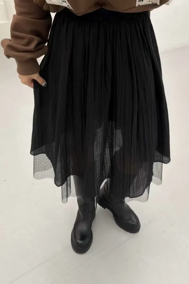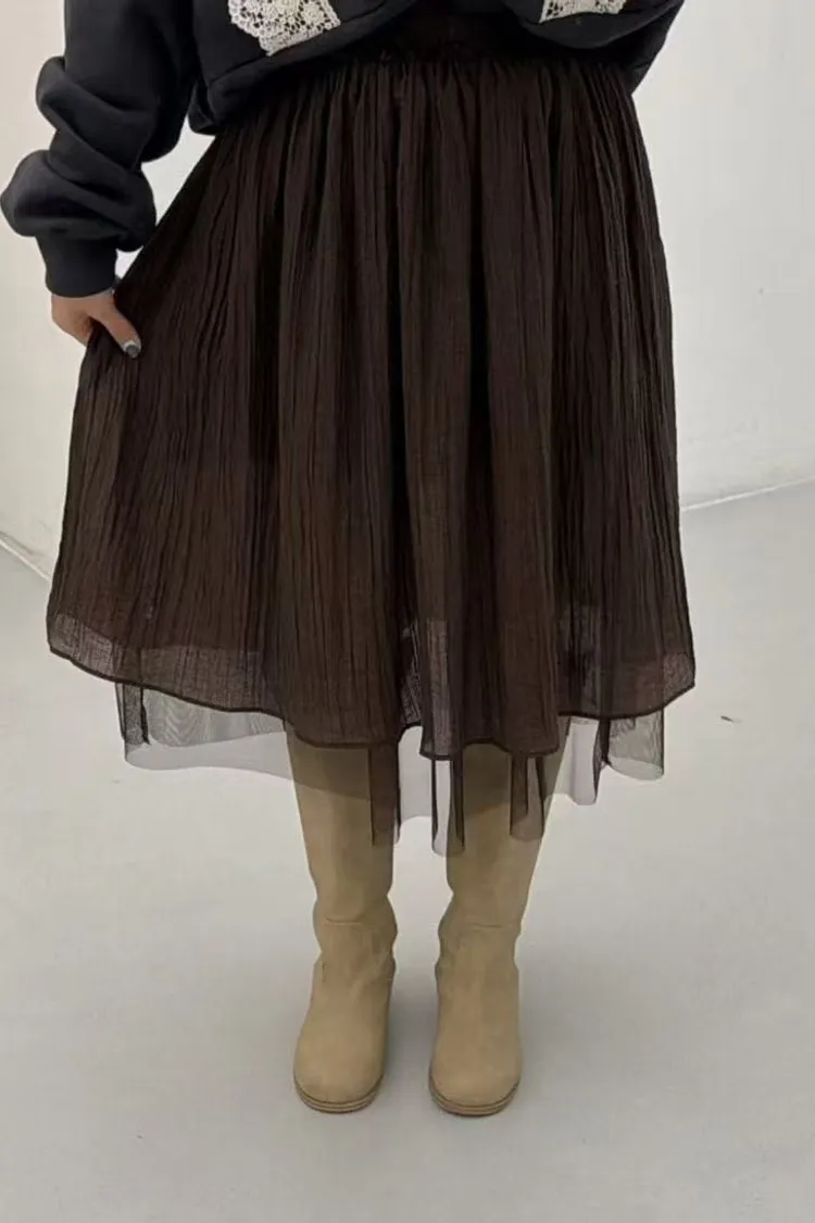 VA06細褶雪紡網紗裙