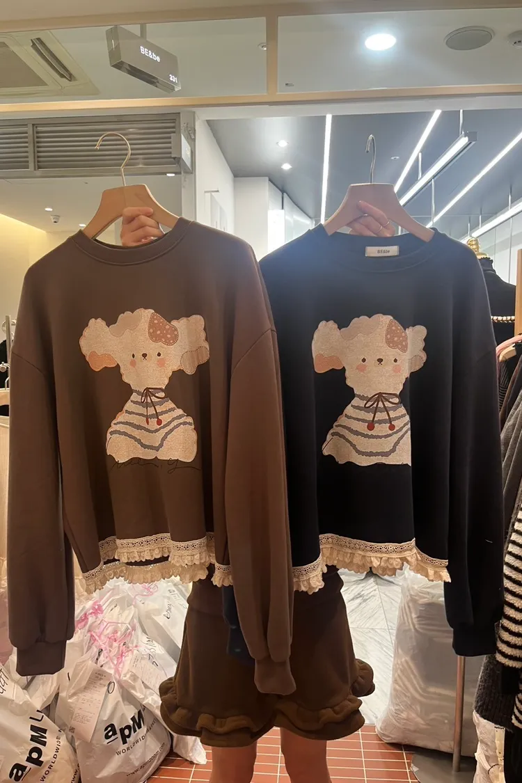 BE25狗狗下擺蕾絲上衣