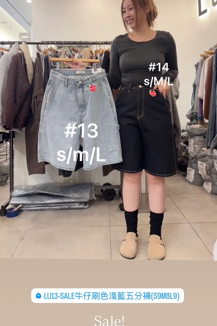 LU13-SALE牛仔刷色淺藍五分褲(S9M8L9)