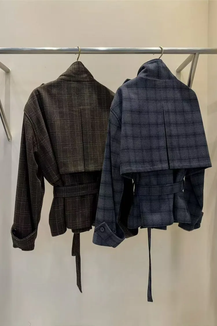 EM01格紋風衣感外套(可SET)