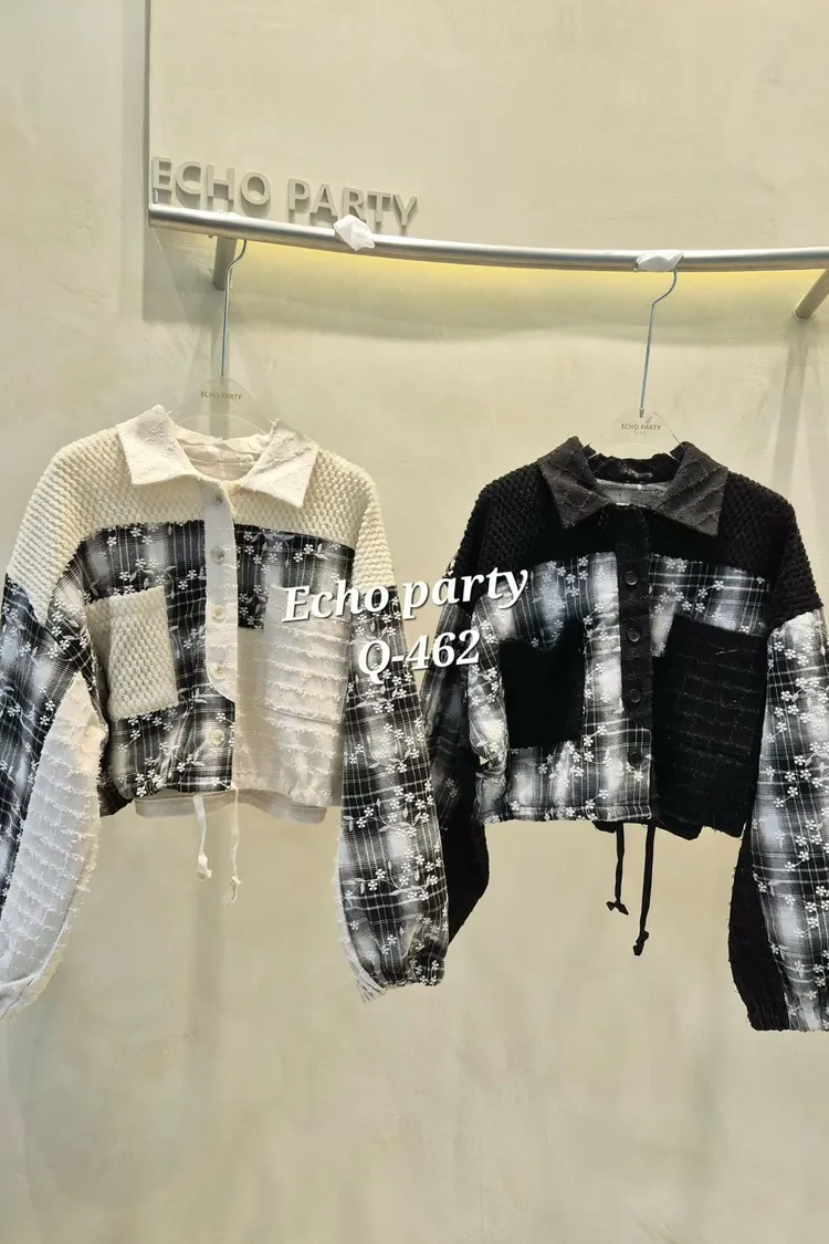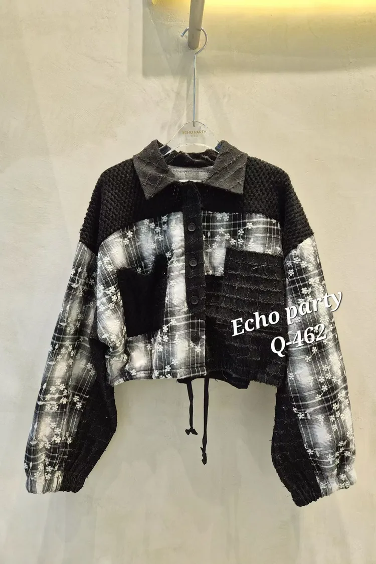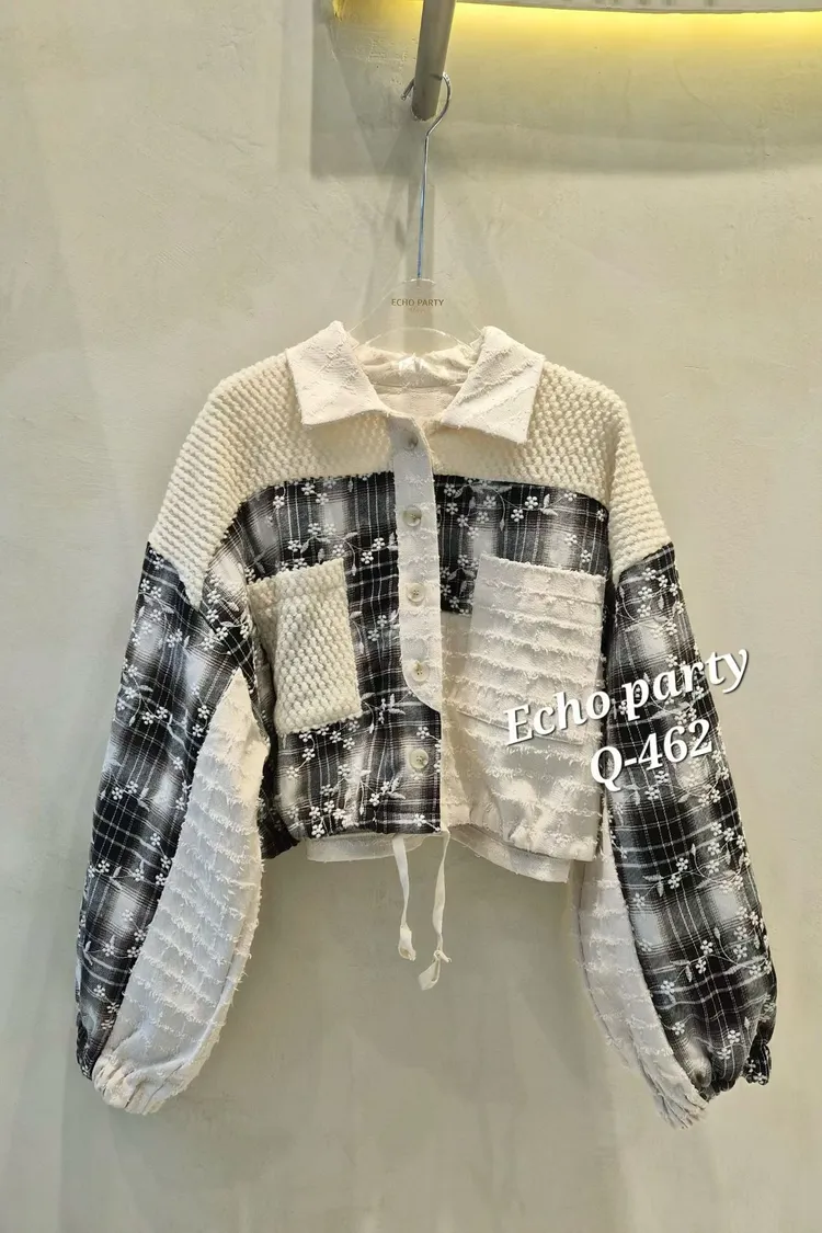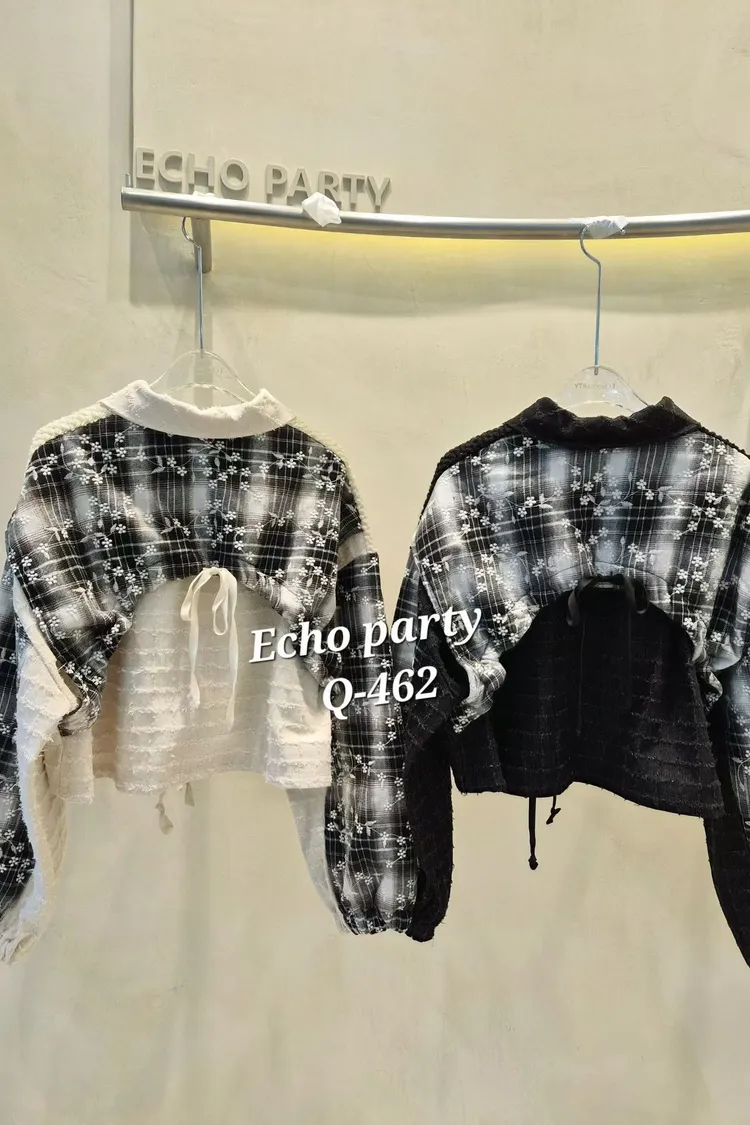 2512EP34小花刺繡格紋外套