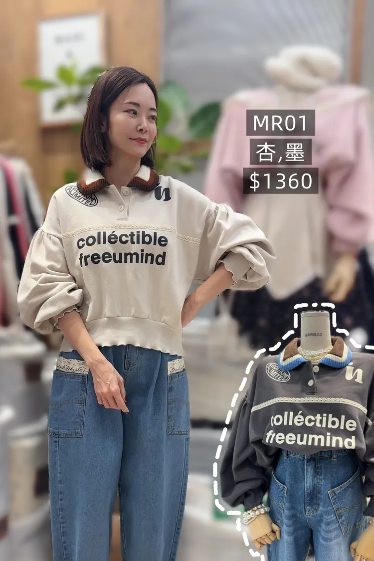 MR01針織翻領2釦落肩踢