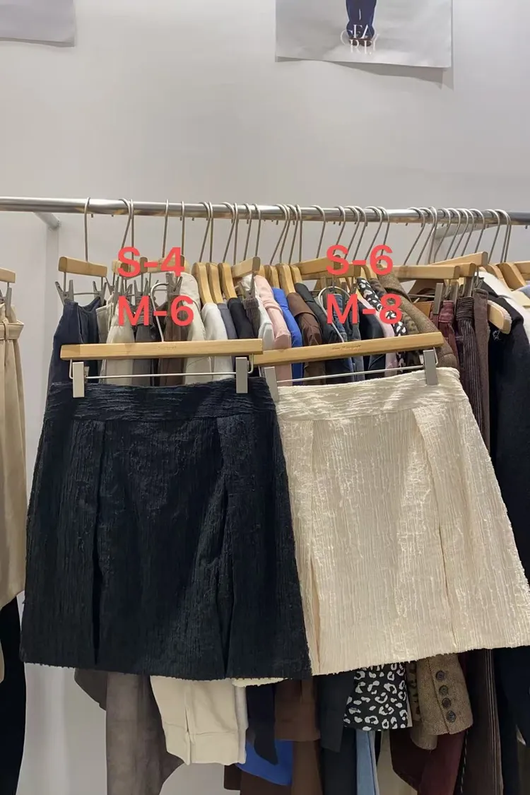 AN46-肌理藝紋紋理短裙(黑S4M6/米S6M8)