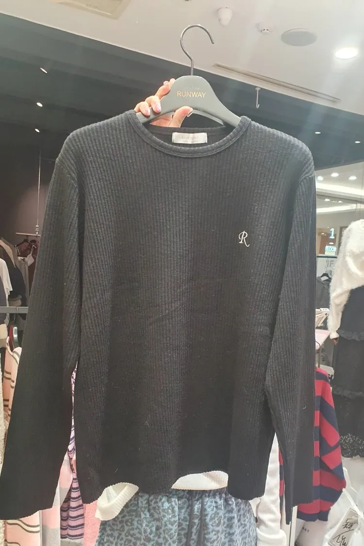 RW12-圓領坑條字母R衣黑(12)