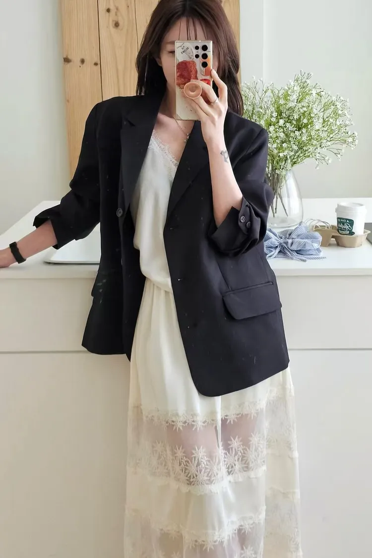商品一經駐韓採購員下單後,不接受「色差、尺寸不合、與想像中不一樣…等個人觀感理由」退貨。謝謝理解。 *本賣場由李科蓁律師擔任法律顧問 其他運費與付款規格請詳讀: https://www.littlebird-korea.com/menu_footer.php?id=2 *商品除非「現貨」,其他都由韓國追加,需待7-10天。(有可能因布料短缺或天災等不可抗力因素延長,實際出貨日以工廠實際到貨日為主。) *本商品屬「代購服務性質」除瑕疵品,無法退換貨。如需試穿者,歡迎至楊梅工作室試穿再進行選購。 *小鳥衣櫃全館滿$3888免運,其餘一律運費「$70」 時髦精的廓形西裝外套+今年流行的蕾絲單品,直接就是時髦法式女孩😎😎 非常淺的杏色提亮氣色,高級感暗灰和經典黑色~ 觸感精緻高級,手感非常細緻,面料薄而有挺度,輕盈不壓身👌 整件都有高質感全內裡,兩側口袋,極薄墊肩,霧面琥珀釦~ 微寬版型,建議XS~L穿著 96%聚酯+4%彈性