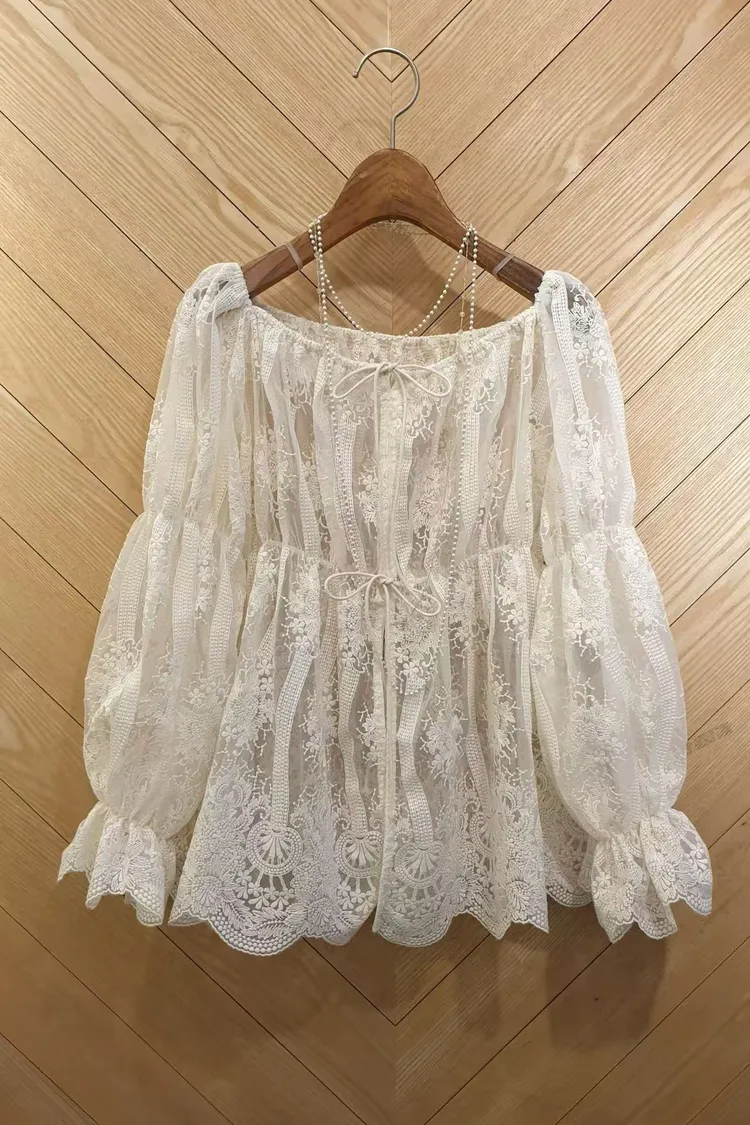 VI10領綁帶2穿刺繡衣(2色)