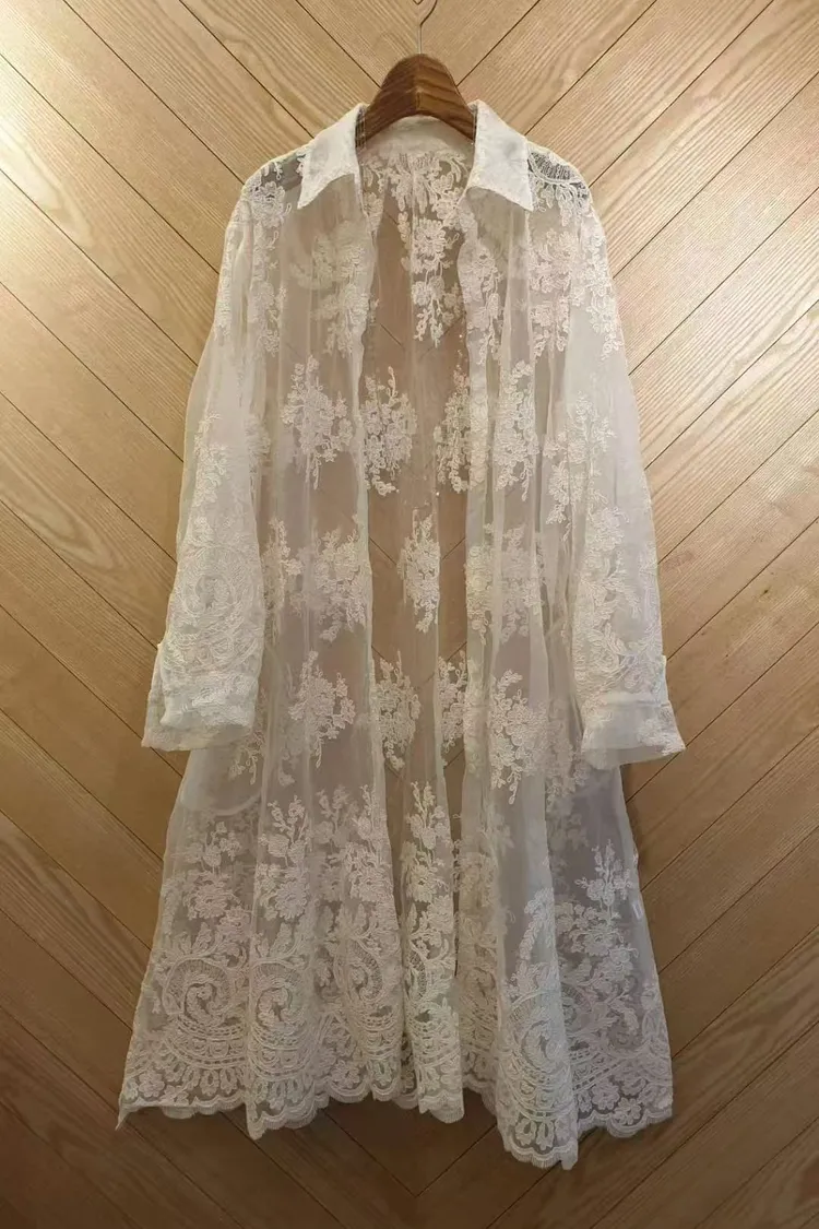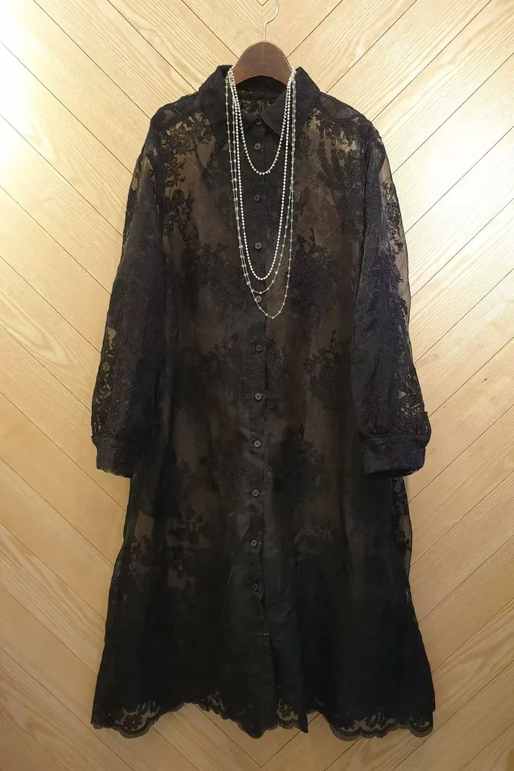 VI13花束刺繡尖領排釦洋裝(有口袋,2色)