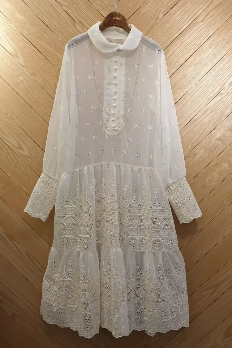 VI14小花圈圈蕾絲釦洋裝