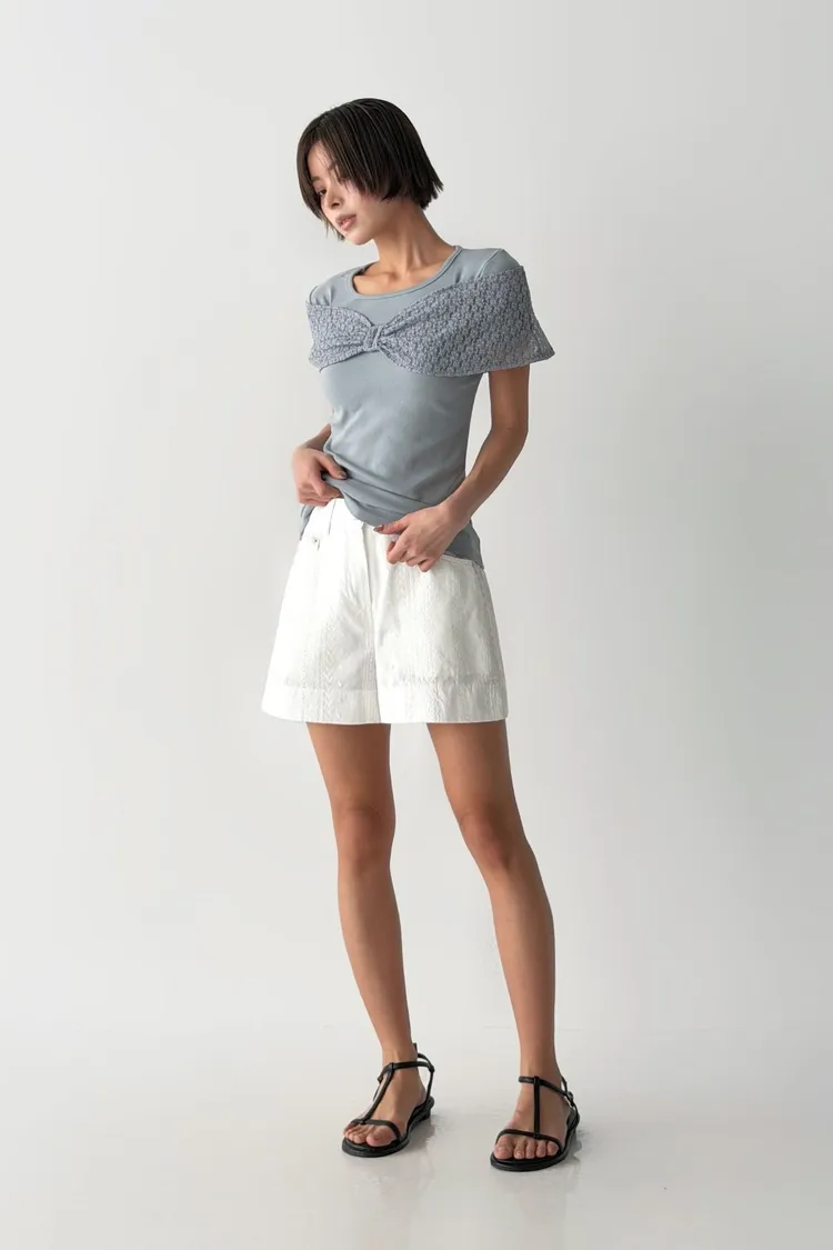 MO64刺繡蕾絲短褲(4色)